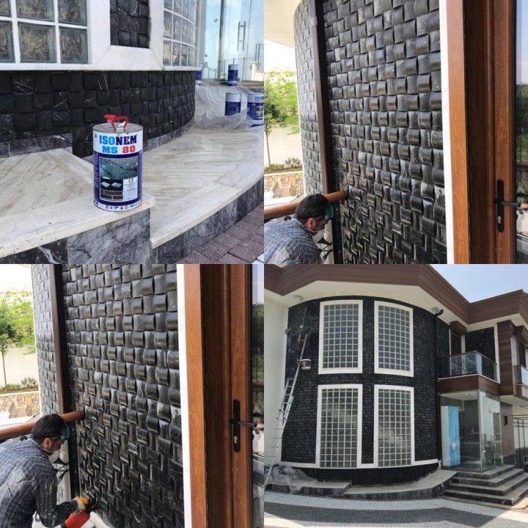 اضافة الى ميزه عزل المياة فأنه يحمي الواجهه من التفتت، والتلوين، والتآكل، مما يحافظ على التماسك الهيكلي للبناء